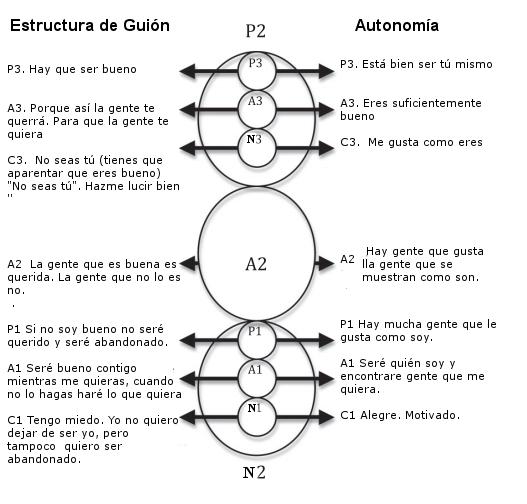 Los dos conceptos están relacionados en que la autonomía es necesaria para cambiar la estructura del guión. Si una persona no es autónoma, estará atascada en el guión que le dieron en la infancia. Sin embargo, si una persona es autónoma, puede elegir cambiar su guión y crear una vida más satisfactoria.
